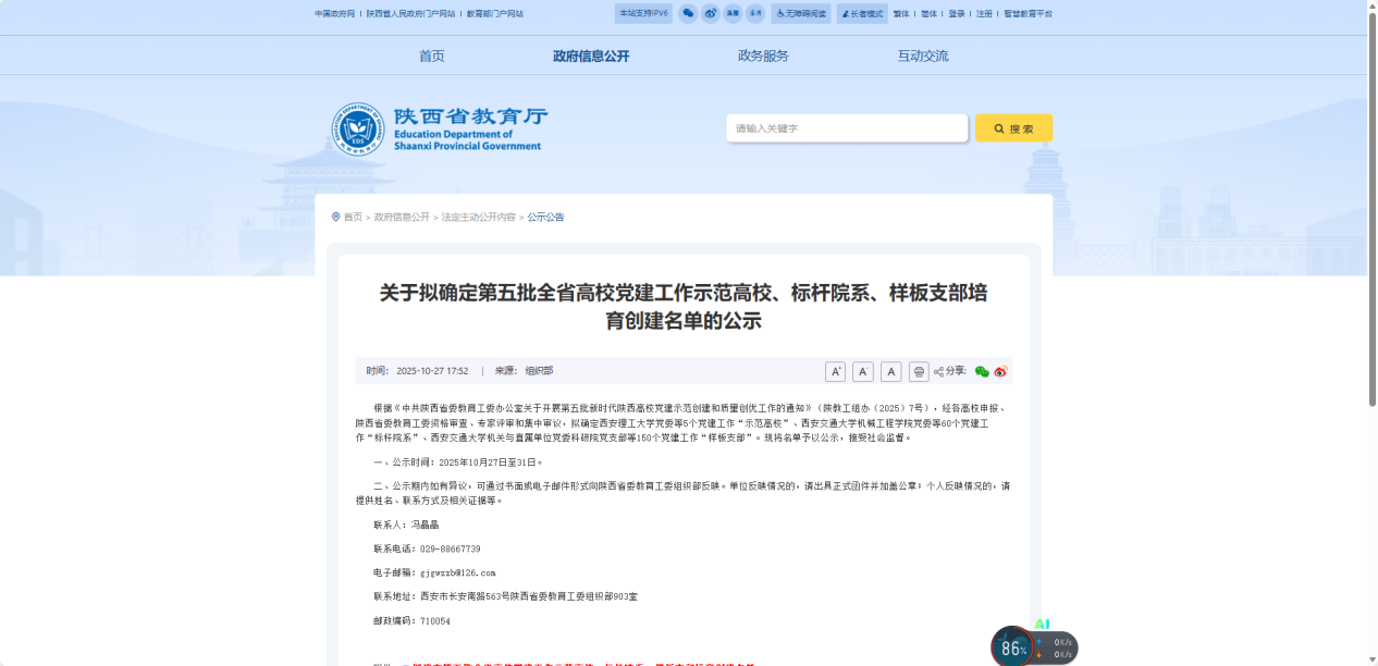 近日,陕西省委教育工委公布了第五批陕西高校党建工作示范创建和质量创优培育创建名单。我校党办质保党支部入选第五批陕西高校党建工作样板支部培育创建单位。