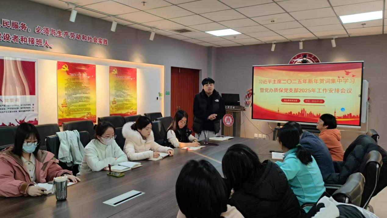 2025年1月3日下午,党办质保党支部在图书馆党建会议室召开习近平主席二〇二五年新年贺词集中学习暨党办质保党支部2025年工作安排会议。党办质保党支部全体党员参加会议。